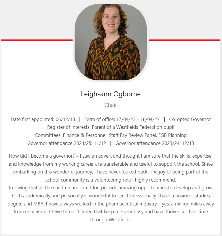 Additionally, we also have a resources sub-committee which meets twice a term. Some Governors also have specific interest areas or responsibilities such as Special Educational Needs and Child Protection.