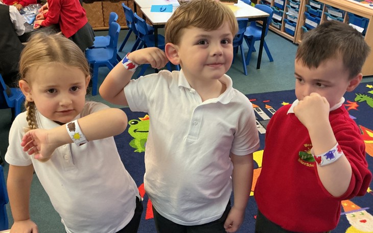 This week we have had an exciting focus in school and have spent time thinking carefully about our FRIENDS and the 'Power of Good!’ It all began with 'Odd Socks Day' when (wearing our array of jazzy socks) we talked in our classes about how important it is to understand that we are all different and unique.  Throughout the remainder of the week, we have completed art work, circle times, playground games and writing activities. Year 1 and Year 2 spent time with some 'new' friends from WJS; Year 2 visited Year 4 and Year 1 were visited by Year 5. We hope all the children continue to use their POWERS and be great friends to those around them.