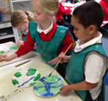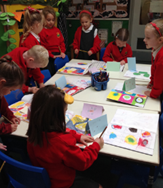 Later in the term, we learnt to name the primary colours and studied the work of the artist ‘Mondrian’ recreating our own Mondrian pictures selecting the correct colours. We then used paint to practise making secondary colours. We learnt about the work of the artist ‘Kandinsky’ and we used our knowledge of colour to create our own work in the style of Kandinsky.