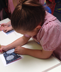 In Art, we have learnt about the designer Orla Kiely who is famous for her fabric and pattern designs inspired by the natural world. We used string to create printing blocks in leaf shapes. Our prints look amazing! We also worked on our drawing skills, thinking about representing the line, shapes and space in things we observe.