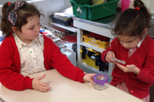 In Science we have learnt about plants. We grew our own beans and identified parts of the plant including leaves, flowers, petals, roots and stem. We also carried out an experiment using cress seeds to find out what plants need to survive. We have learnt about habitats and have thought about how plants and animals adapt to suit particular habitats. As part of this learning we have explored the school grounds and found of a variety of insects and creatures. We extended our learning on our school trip to Wellington Country Park where we found out about pond habitats .